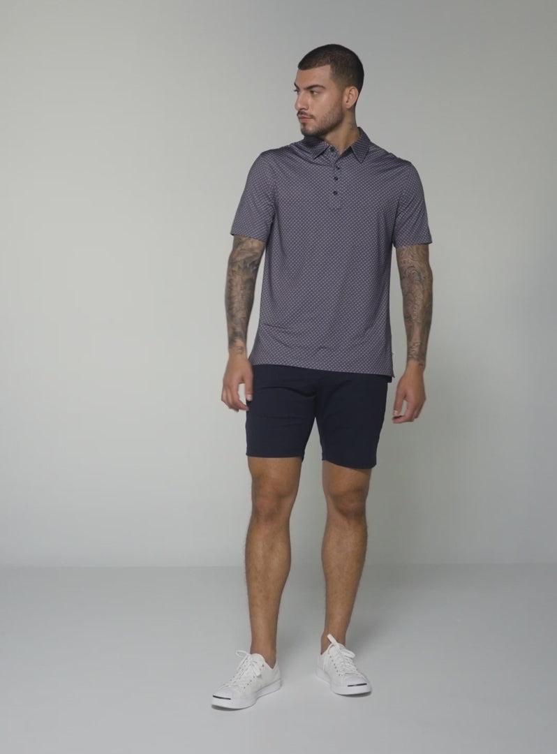 A premium 4-way stretch short that features a sleek silhouette and detailed stitching for a modern contemporary look. Equipped with elastic waistband and pockets for your valuables.